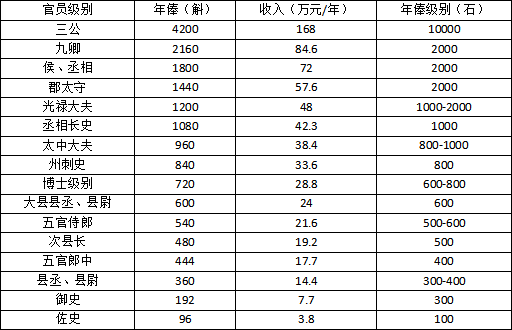 汉朝建立了俸禄制,以官秩作为发放工资的标准。汉代的官秩,大致分为三类: