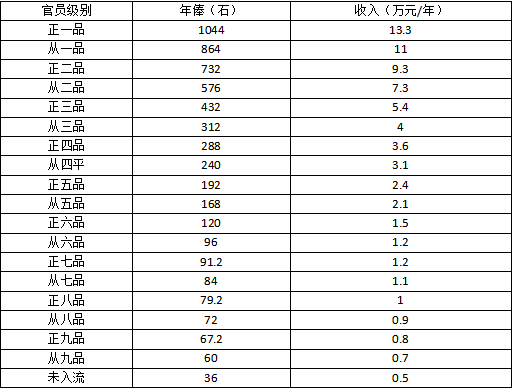 隋朝的俸禄不是按照品级发放,而是按照具体担任的职务轻重来决定,比如虽然都是第五品,但是丹阳令尹就是中二千石(2160石),皇子府长史为千石(960石)。